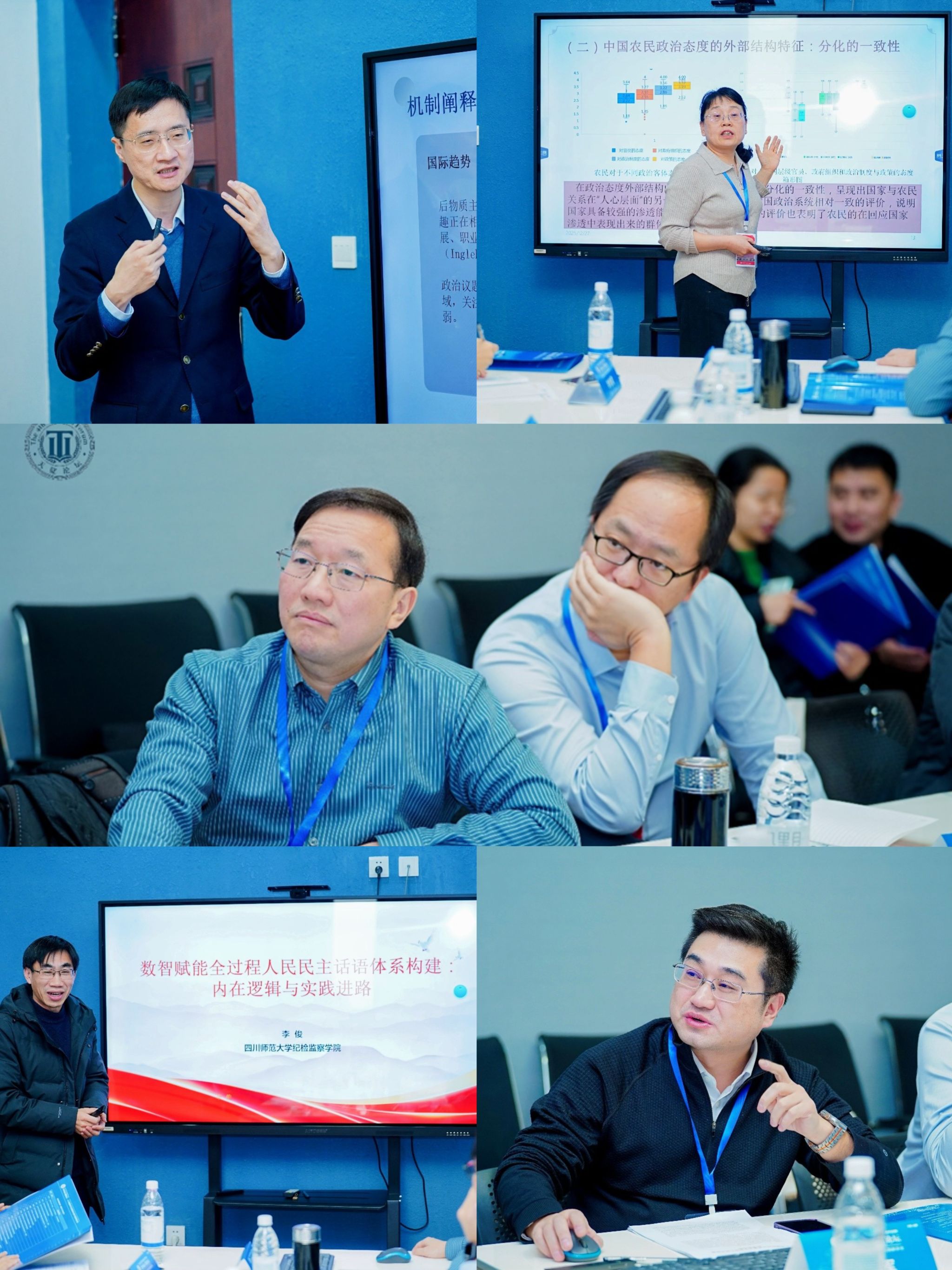 院长史云贵教授主持,南京师范大学余泓波副教授、《社会科学研究》杂志编辑陈果副研究员担任评议人。清华大学张小劲教授指出AI正推动政治学研究从“观察”向“模拟”范式转型,强调利用大数据与模型实现精准治理,同时需坚守核心理论关切。清华大学张楠教授在剖析了“人工智能+”战略背景下政府大模型发展的现实需求基础上,对国家数据基础设施的概念内涵、若干运营议题进行了阐释,最后指出了面向政务大模型的国家数据基础设施存在的短板、应该具有的功能形态及运营思路。广州大学蒋红军副教授聚焦数字时代国家如何为平台劳动者提供社会保护,以珠三角某地的工会变革为个案,揭示了平台劳动者社会保护的生成机制与双重治理逻辑。西南交通大学林晶晶副教授则围绕数字基础设施、人工智能产业政策对企业新质生产力发展的影响路径展开了实证分析,通过双重及其学习-部分线性回归模型揭示了相关政策通过优化人才结构、激发前沿技术创新、推动企业数字化转型、提高生产效率来促进新质生产力发展。中国人民大学张扬老师探讨了生成式多主体模型在弥补传统社会调查方法缺陷方面的优势,并通过生成式多智能体仿真实验分析了大五人格对政治表达的影响。安徽大学刘天祥老师通过廓清治理算法的内涵与外延,从全过程视角下来重构算法风险的框架,并初步探索了算法治理的对象与方案。