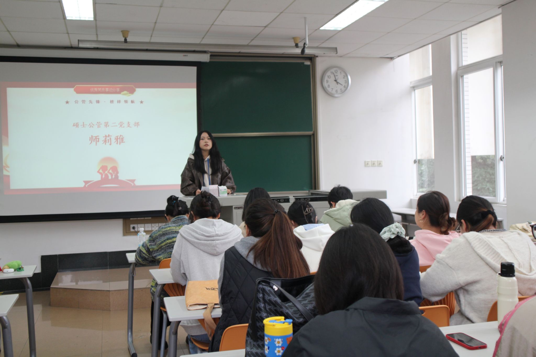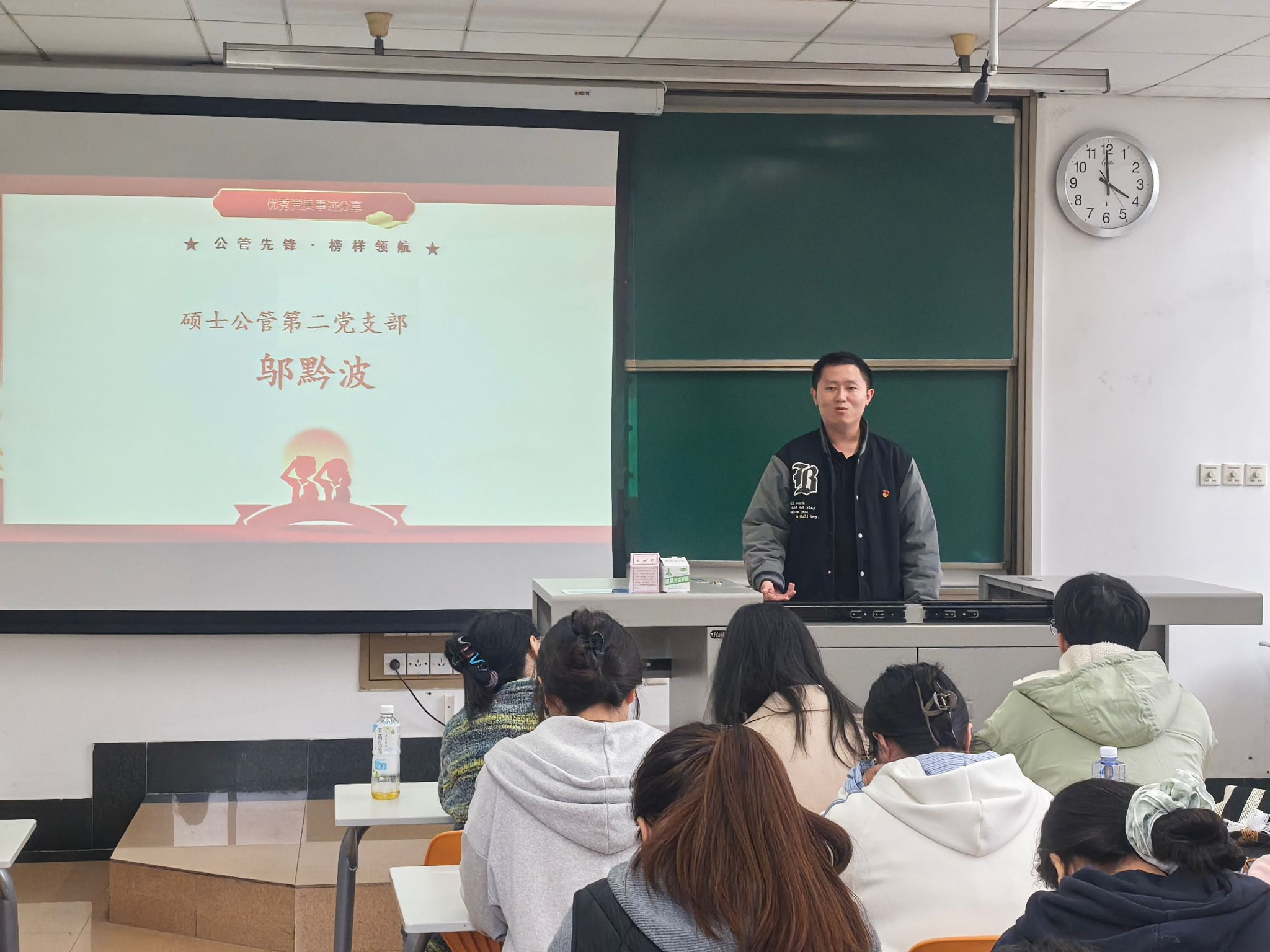 博士研究生朱玲莉,硕士公管第二党支部书记、西南交通大学第26届研支团成员师莉雅,硕士公管第二党支部纪检委员、退伍士兵邬黔波三位优秀党员代表,结合自身实践经历分享成长感悟,为全体党员送上了一堂生动鲜活的初心党课。