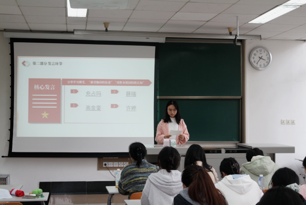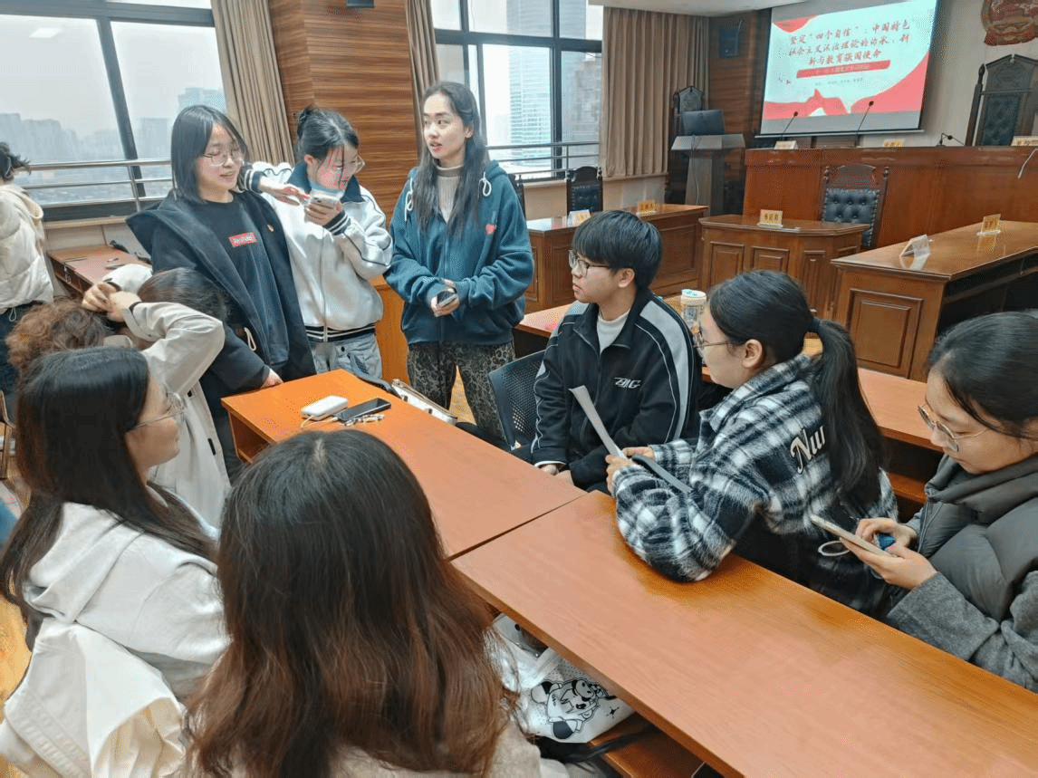 本科法学党支部以理论宣讲为抓手,由张译丹同志担任领学人,围绕 “理论之源”“时代之魂” 等四大板块开展专题授课,深入阐释中国特色社会主义法治理论的深厚根基与习近平法治思想的核心要义,重点解读坚定 “四个自信” 与建设教育强国的内在逻辑关联,为后续研讨环节筑牢理论基础,引导党员在法治视角下思考教育公平、教育治理等重要议题。