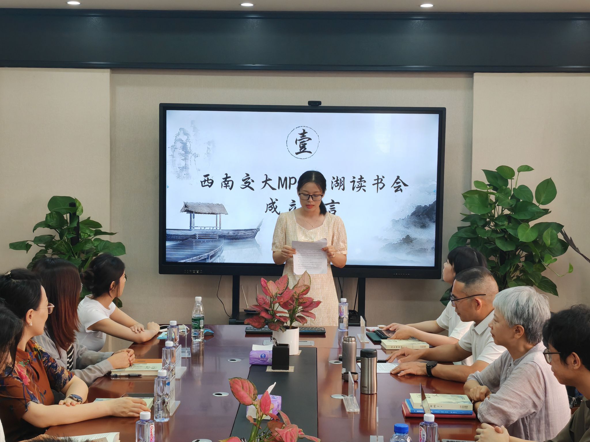 活动伊始,MPA校友代表周艺璇宣读成立宣言,镜湖读书会正式宣告成立,以“镜湖”为精神意象,强调以史为鉴、深耕优秀传统优秀文化。特别援引苏轼“为国不可以生事,亦不可以畏事”的务实精神与“守其初心”的价值坚守,致力为推进国家治理现代化贡献交大智慧。字里行间激荡着交大人“竢实扬华”的使命担当,赢得现场热烈掌声。